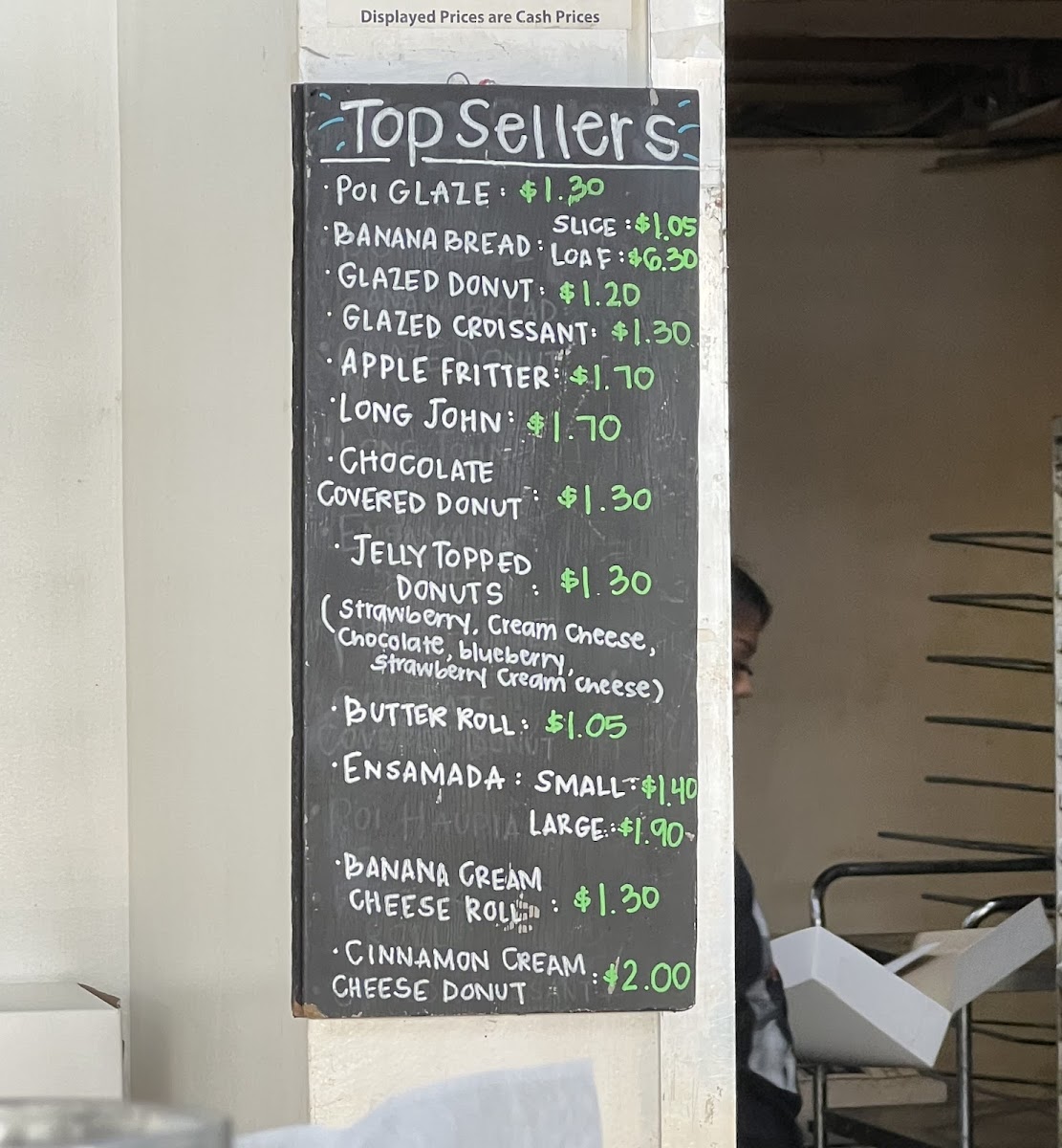 The menu features a balance of sweet and savory items such as poi rolls, butter rolls, and tender whole loaves that can be sliced to share. Items like pineapple upside down squares and bread pudding provide a familiar, homey touch, making the bakery a welcoming spot for those seeking a quiet moment or a no-fuss bite on the go.