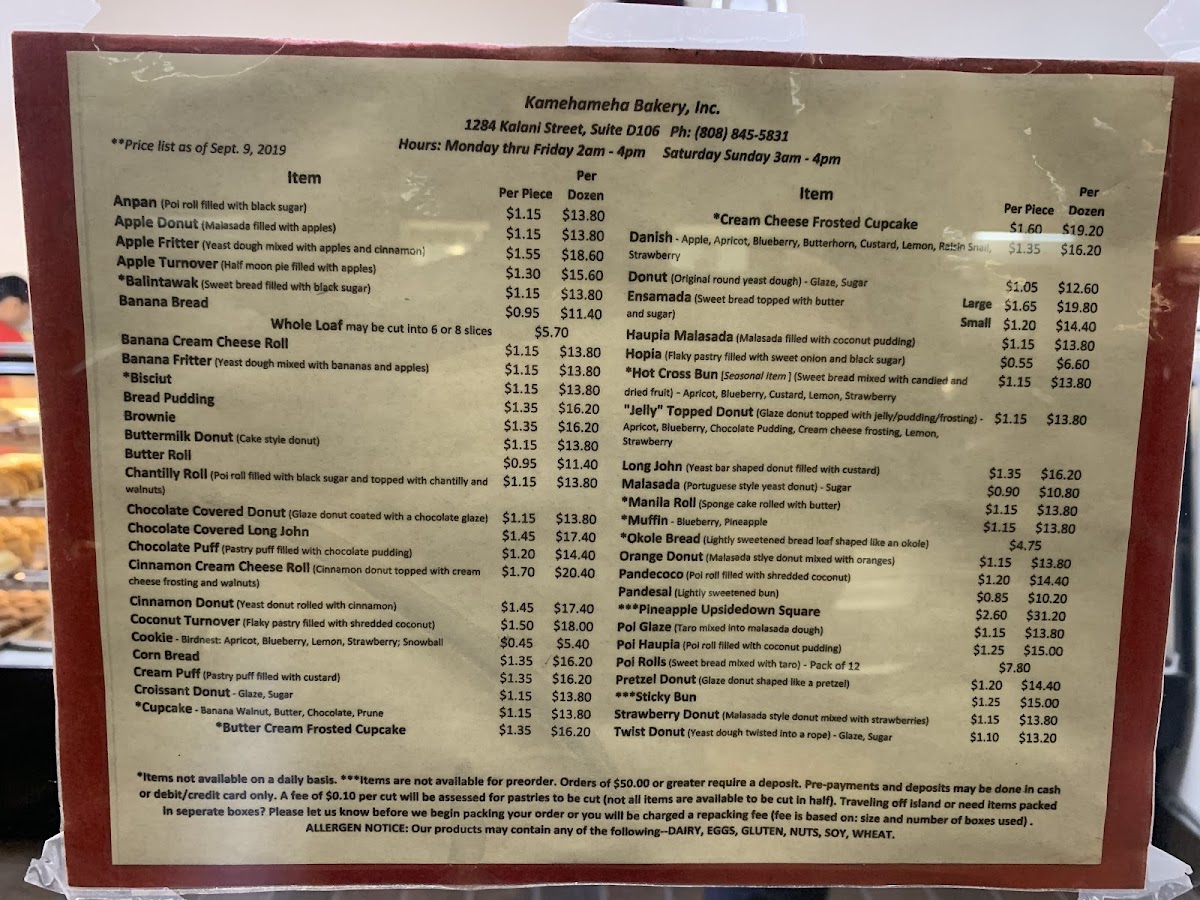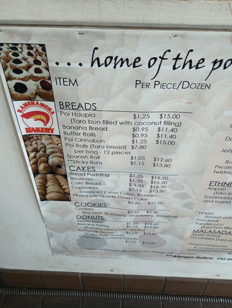 Kamehameha Bakery Inc offers a straightforward and comforting menu centered on traditional Hawaiian bakery favorites. The selection includes a variety of freshly baked breads and classic pastries that suit both early mornings and casual afternoon treats. Visitors often stop by to enjoy warm, soft doughnuts like their signature poi glazed doughnut or a lightly sweetened strawberry malasada, perfect alongside a simple cup of coffee.